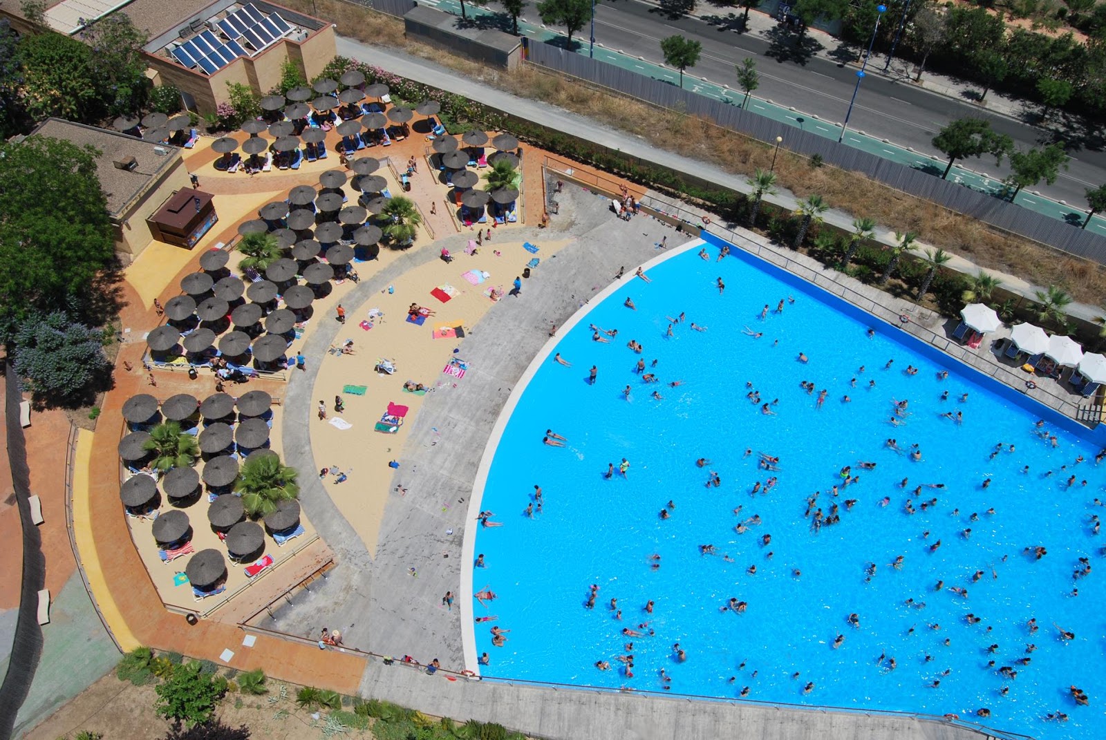 En la segunda área situada al sur del recinto, se sitúa la Piscina de Olas. Simula una playa natural con arena desde donde el público accederá a la piscina.